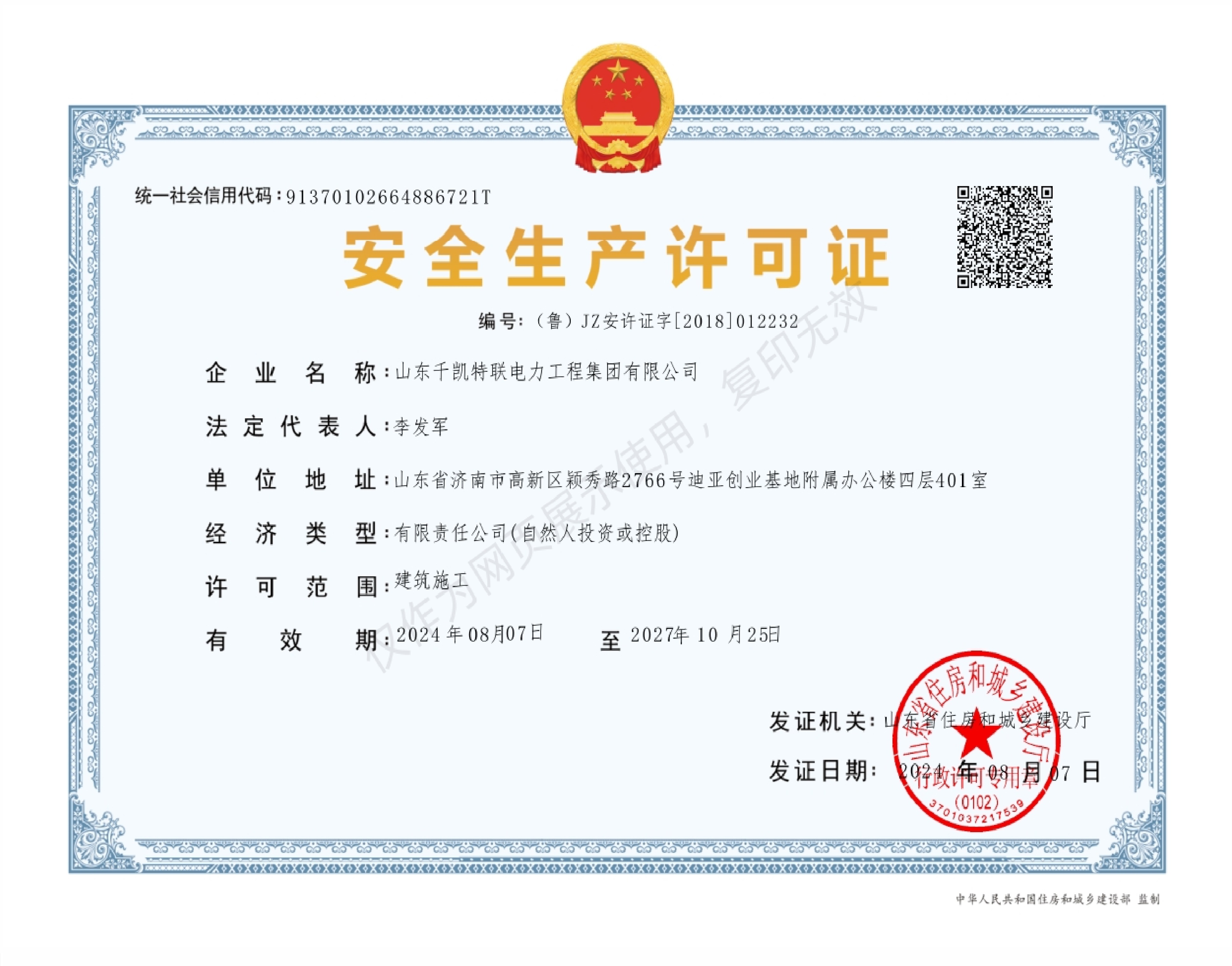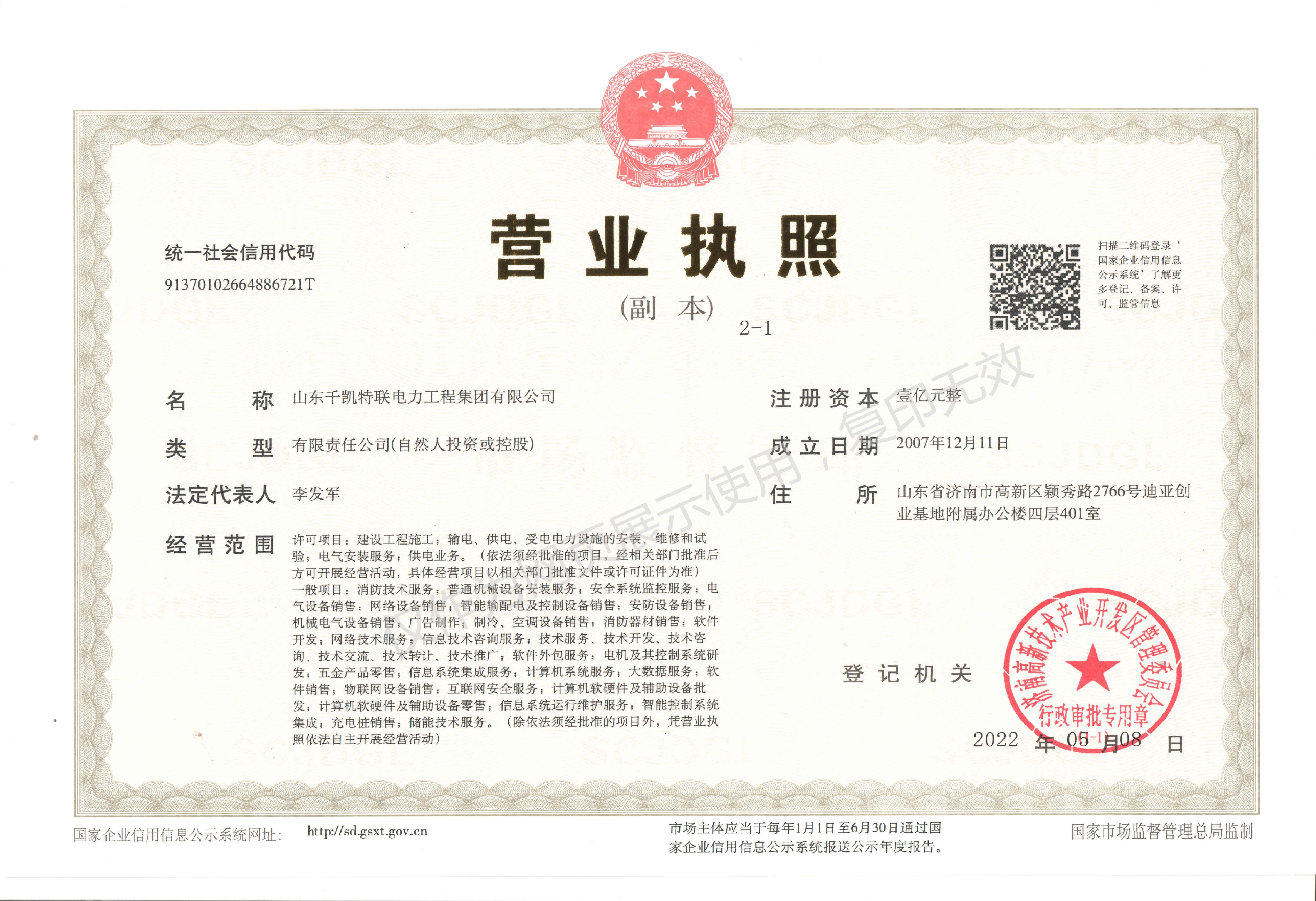 電力工程施工總承包二級證書