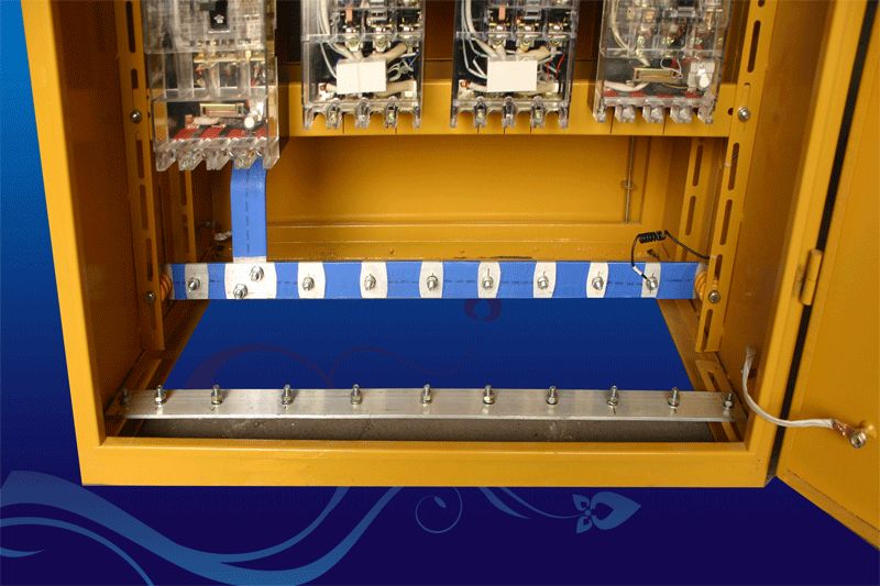 內設400A-630A具有隔離功能的DZ20型透明塑殼斷路器作為主開關,分路設置4-8路采用具有隔離功能的DZ20系列160A-250A透明塑殼斷路器,配備DZ20L(DZ15L)透明漏電開關或LBM-1系列作為漏電保護裝置,使之具有欠壓、過載、短路、漏電、斷相保護功能,同時配備電度表、電壓表、電流表、兩組電流互感器。漏電保護裝置的額定漏電動作電流與額定漏電動作時間的乘積不大于30mA.S。最好選用額定漏電動作電流75-150mA,額定漏電動作時間大于0.1S小于等于0.2S,其動作時間為延時動作型。